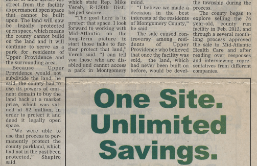 As an aside here, it should be noted that the County’s main focus during the entire course of the sale was also to control the narrative, a lesson that our junior varsity Democrats on Upper Providence Board learned well but cannot execute as effectively since they do not have Josh’s control of a fawning media (or a viable media in which to do it, for that matter.) Hence, FAQ inclusion in the Newsletter, Xeroxed tract handouts of the FAQs, and a highlighted link to the FAQs on the Township’s webpage.